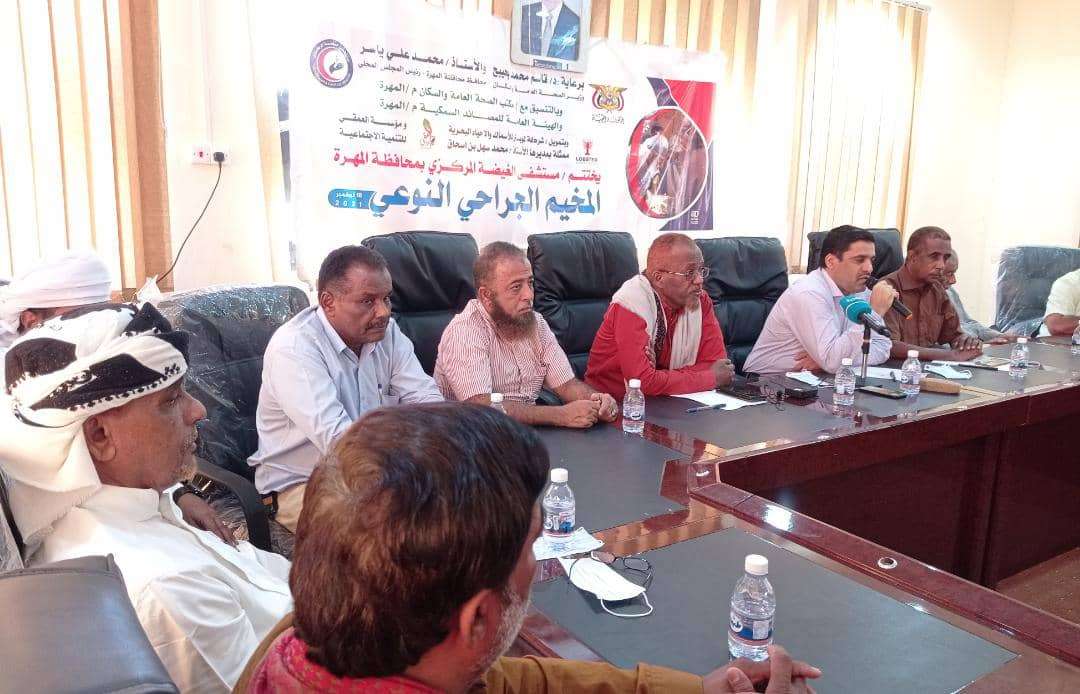 اختتم اليوم الخميس بمحافظة المهرة مديرية الغيضة المخيم الجراحي النوعي الذي نفذ في مستشفى الغيضة المركزي برعاية وزير الصحة و السكان الدكتور قاسم محمد بحيبح ومحافظ محافظة المهرة رئيس المجلس المحلي الاستاذ محمد علي ياسر وبتنسيق مع مكتب الصحة والسكان و الهيئة العامة للمصائد السمكية و بتمويل من شركة لوبستر للاسماك و الاحياء البحرية و مؤسسة العمقي للتنمية الأجتماعية.