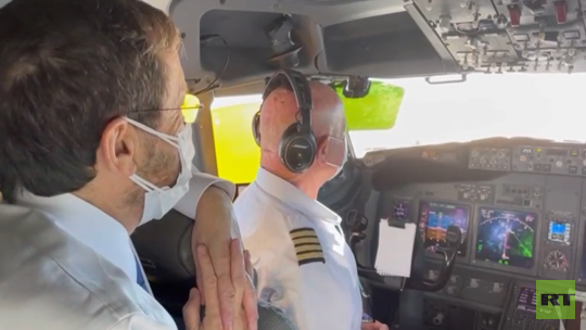 وفي طريقها إلى الإمارات، حلقت طائرة الرئيس فوق المملكة العربية السعودية، وقال الطيار للركاب: "نحن الآن فوق المملكة العربية السعودية..نحن نصنع التاريخ! سنطير قريبا فوق العاصمة"، فيما دخل الرئيس قمرة القيادة، ونظر إلى الأراضي السعودية، وقال: "بدون شك..إنها حقا لحظة مؤثرة للغاية".
