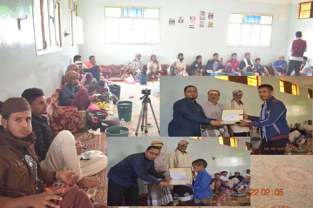 وفي ختام الاجتماع قام رئيس الجمعية الشيخ هاشم عبدالله احمد المنتصر واعضاء الهيئة الادارية بتكريم الإعلاميان صبري عسكر وجهاد الحالمي الهنومي مساهمتم الفاعلة في نشر اخبار الجمعية وكذلك تكريم الاعضاء الفاعلين والشخصيات الداعمة وطلاب الجامعات وكذلك المتفوقين من طلاب المدارس.