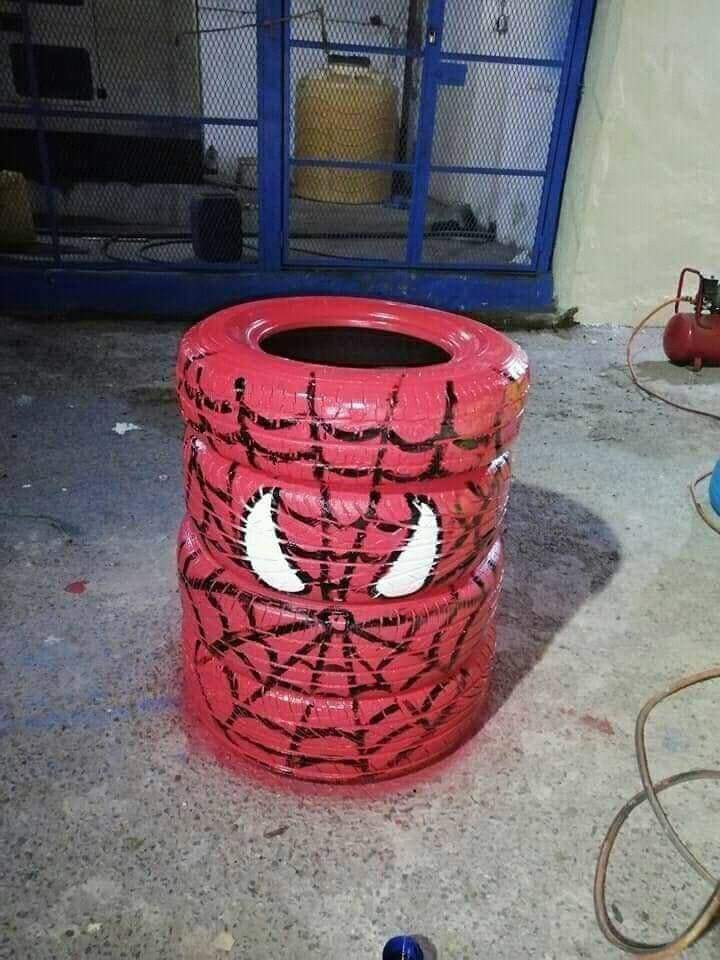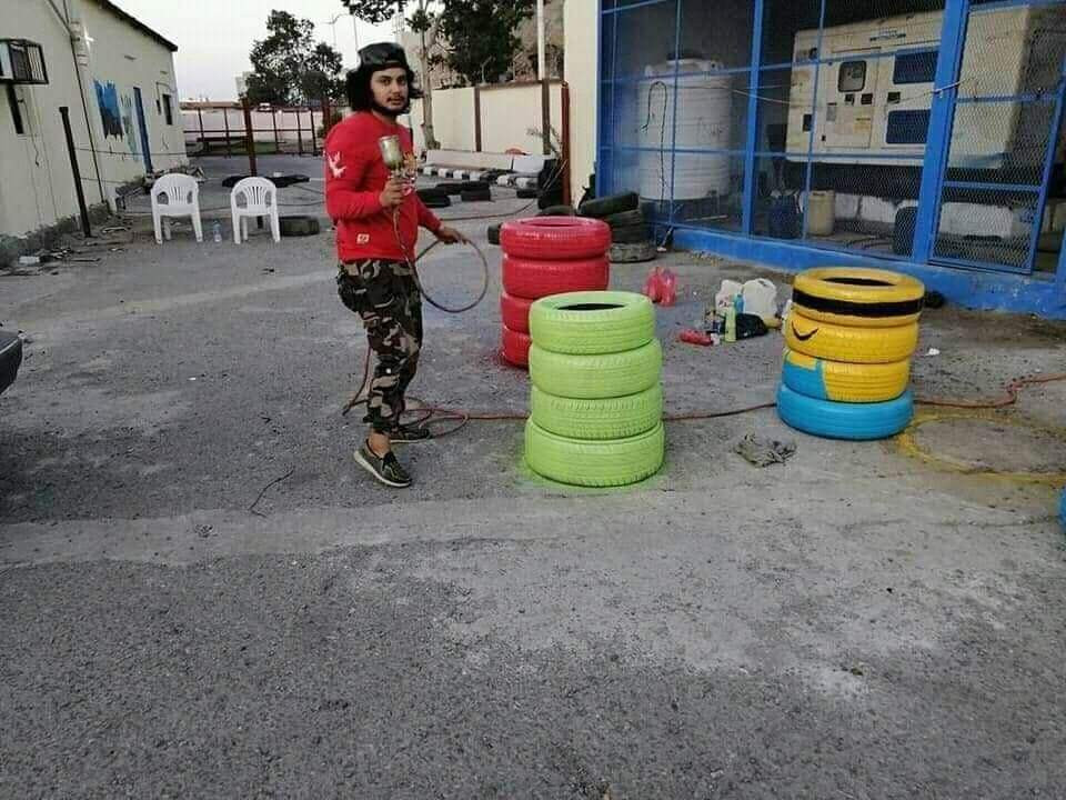 ابتكر فنان تشكيلي طريقة جميلة لاعادة تدوير اطارات السيارات التالفة بعدن.