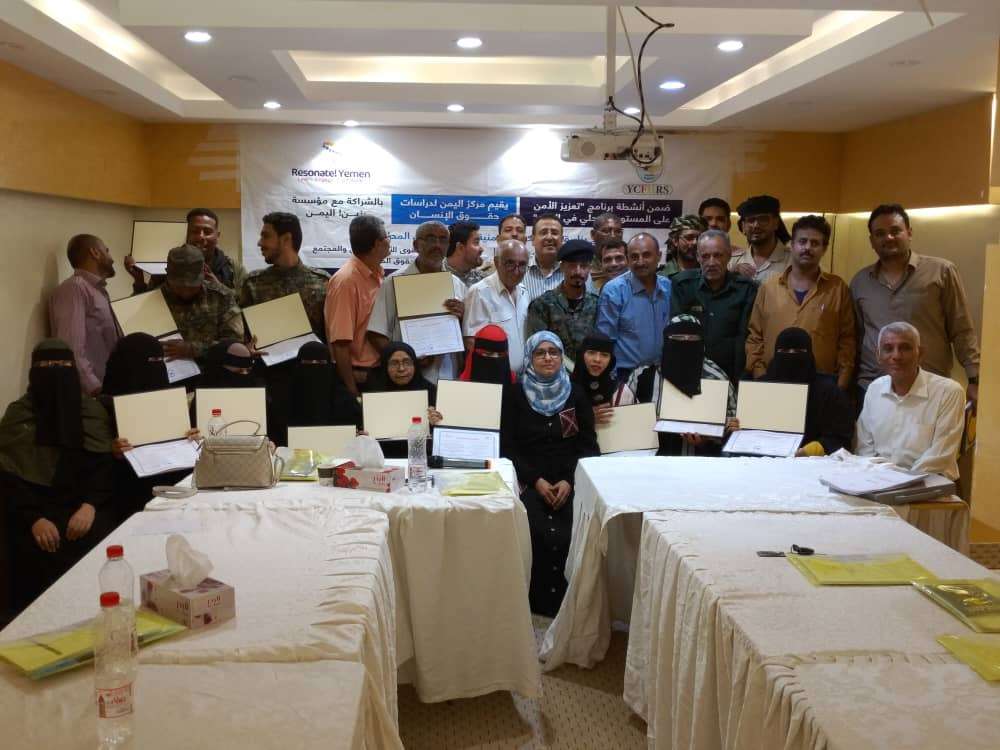 اختتمت اليوم في فندق رويال بعدن الورشة التدريبية الخاصة حول تعزيز القدرات القانونية والضبطية لمنتسبي الأمن والشرطة النسائية وحقوق الإنسان للحفاظ على حقوق المتهمين خلال عملية جمع الاستدلالات والأدلة أثناء التحقيق نظمها مركز اليمن لدراسات حقوق الإنسان وبتمويل من مؤسسة رنين اليمن وبالتعاون مع إدارة أمن عدن ..بمشاركة (75) مشاركا ومشاركة من إدارة الأمن وأقسام الشرطة على مستوى مديريات محافظة عدن.