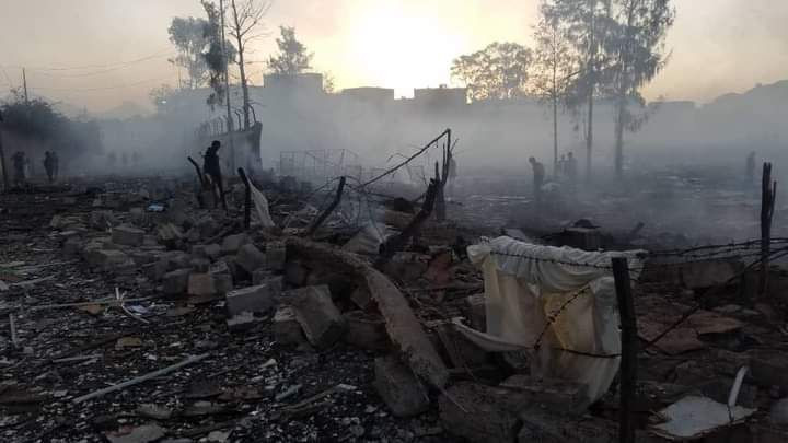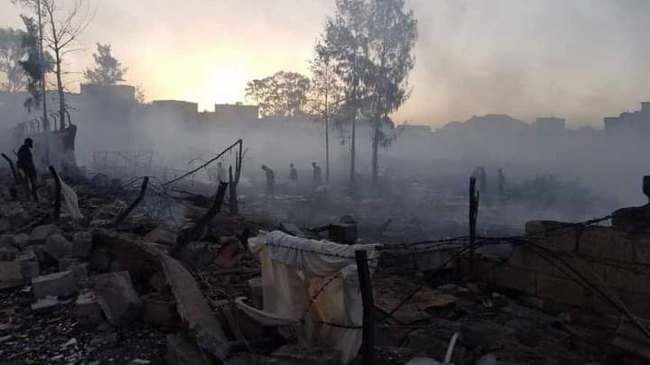 تحصل كريتر سكاي على صور أولية لجانب من آثار الدمار الذي خلفته الغارات الجوية فجر اليوم على حوش الهيئة العانة للتأمينات في منطقة حدة بصنعاء.. و سقط عدد من القتلى والجرحى إثر غارات جوية للتحالف على صنعاء فجر اليوم السبت. وقال مصدر محلي تم التأكيد : 7 شهداء و3 جرحى بينهم أطفال ونساء سقطوا في غارات السعودية على حوش الهيئة العامة للتأمينات في #حدة بمديرية #السبعين الجدير بالذكر ان الغارات استهدفت منزلين يسكن فيهما حراس تابعين للهيئة العامة للتأمينات مع أسرهم