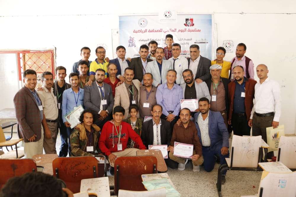 اختتمت ضهر اليوم الأحد الدورة التدريبية في اساسيات الصحافة الرياضية الذي ينضمها قسم التربية البدنية والرياضية بالجامعة والجمعية اليمنية للاعلام الرياضي بالتزامن مع اليوم العالمي للصحافة الرياضية الذي يصادف الثاني من يوليو الجاري واستمرت الدورة التدريبية على قاعة كلية التربية والعلوم بمدينة رداع بمحافظة البيضاء بمشاركة 38 متدرباً ومتدربه من محافظات الضالع والبيضاء وذمار واستمرت على مدى يومين، حاضر فيها الدكتور محمد الناظري الأستاذ المشارك بجامعة البيضاء عضو إدارة مجلس الجمعية اليمنية للإعلام الرياضي والدكتور صقر المريسي الأمين العام المساعد للجمعية اليمنية والأستاذة إيمان الشرعي