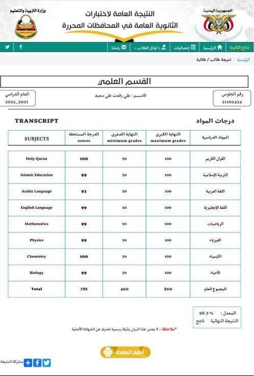 98%5 في القسم العلمي كل التوفيق والنجاح له في مسيرته الدراسيه القادمه ومزيدآ من التقدم والنجاح...