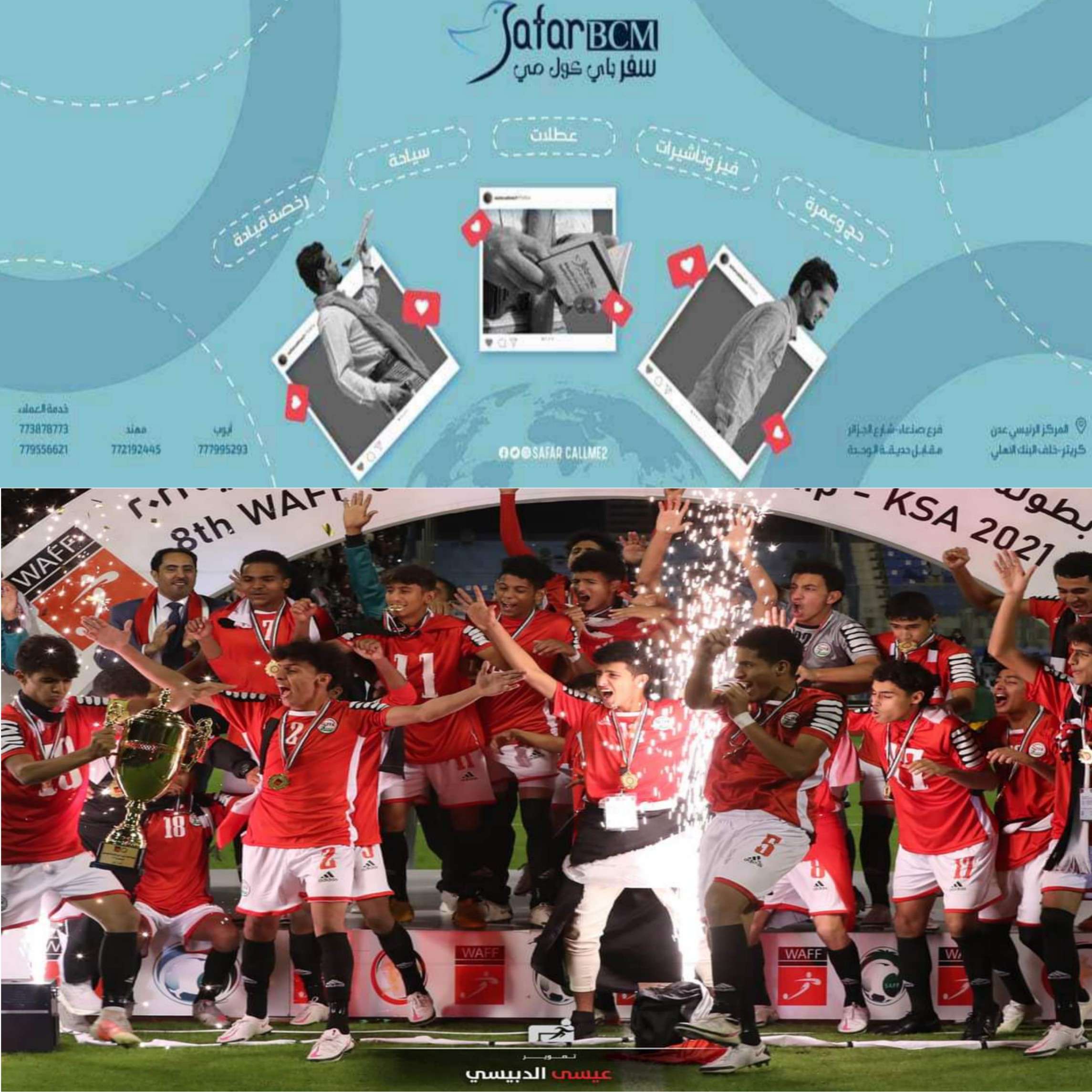 رفعت الإدارة العامة لمكتب سفر BCM للسفريات والسياحة وخدمات الحج والعمرة في العاصمة عدن بقيادة المدير العام للمكتب "ايوب ناجي الخليدي" أجمل التهاني والتبريكات لمنتخبنا الوطني للناشئين وكافة ابناء الشعب اليمني بمناسبة التأهل التاريخي والعبور لبطولة كأس آسيا للناشئين 2023م بعد فوزه في لقاءه الأخير أمام منتخب بنجلاديش بـ 4 أهداف نظيفة