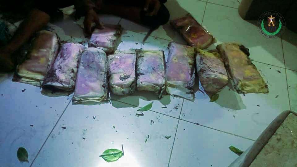 عثرت قوات حزام طوق عدن الامني على كمية من مادة الحشيش المخدر على ساحل ابين بالقرب من نقطة العلم شرق العاصمة عدن