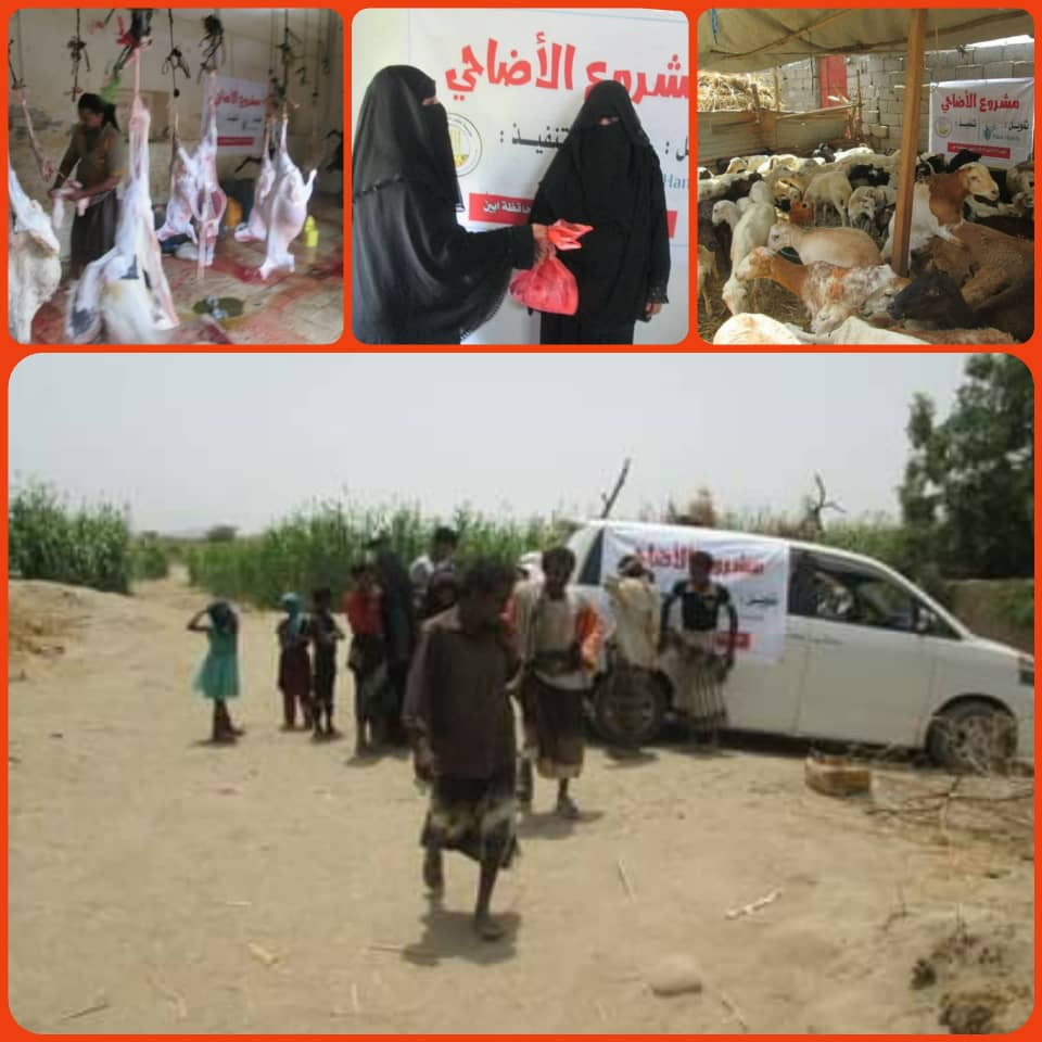 واستهدف المشروع توفير وتوزيع لحوم الأضاحي ل 360 اسرة من الأسر الاشد فقرا وعددا من أسر المكفوفين والنازحين في محافظة أبين .