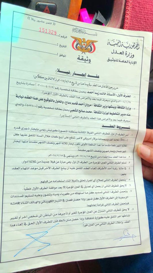 شكا المواطن خالد زيد رفض وتهرب وزارة الثقافة من دفع ايجار فيلا التي استأجرتها الوزارة بمبلغ 3700 دولار شهريا وتم الاتفاق على تسليم الإيجار كل ثلاثة أشهر مقدما .