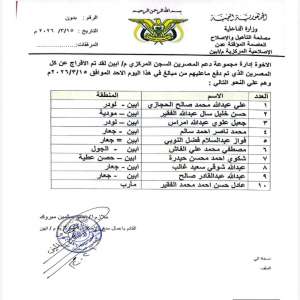 أفرجت إدارة إصلاحية السجن المركزي في زنجبار بمحافظة أبين عن 10 سجناء معسرين بعد سداد ما عليهم من الت...