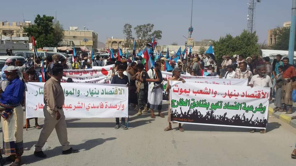 وقال مواطنون لكريتر سكاي:شهدت مدينة عتق تظاهرة صباح اليوم تندد بالانهيار الاقتصادي وتطالب برحيل حكومة بن دغر.