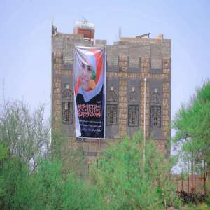 تم رفع صورة كبرى للشهيدة افتهان المشهري في أحد منازل أسرتها بمسقط رأسها في مديرية المعافر بمحا...