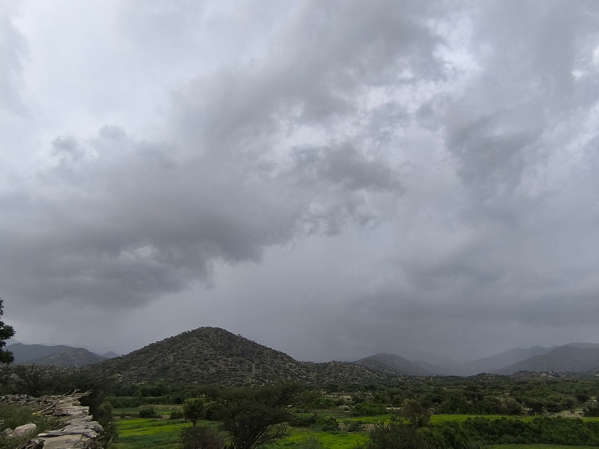 تشهد مديرية طور الباحة شمال غرب محافظة لحج هطول أمطار غزيرة ومتواصلة منذ ساعات، وسط أجواء ملبدة بالغيوم الركامية الجميلة.