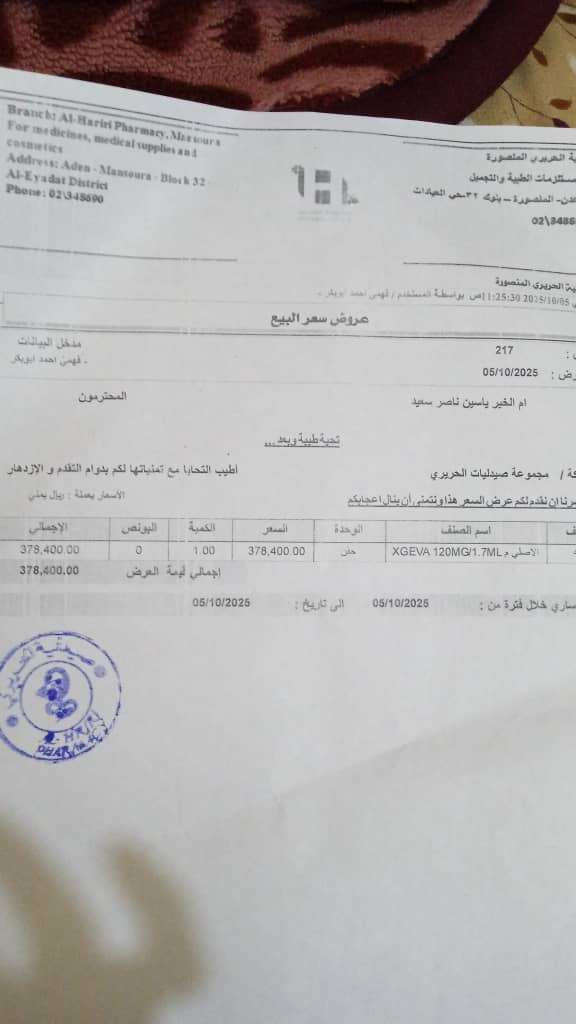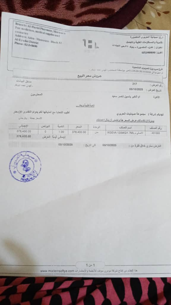 وطالبت ام الخير بتوفير العلاج لها حيث ان الجرعة كانت ب٥٥٠ الف وانخفضت الى قرابة ٣٧٠ الف ريال .