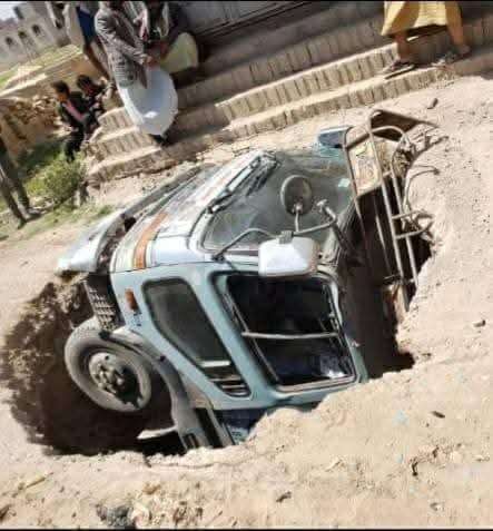 هذا وانهارت الحفرة تحت وزن القلاب بشكل مفاجئ، وتسبب الحادث بأضرار مادية كبيرة