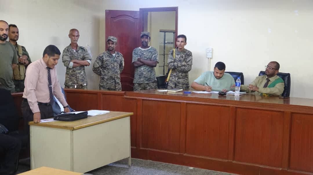 عقدت محكمة صيرة الابتدائية جلستها العلنية اليوم الاثنين، برئاسة فضيلة القاضي نزار محمد بن محمد علي السمان، وبحضور رئيس نيابة استئناف جنوب عدن فضيلة القاضي وضاح باذيب، والقاضي عبيد حسن بن عبدان عضو نيابة صيرة، للنظر في قضية القتل العمد للمجني عليه عارف فوزي غانم فرانس، والمتهم فيها ريدان فارس عبدالعزيز مقبل.