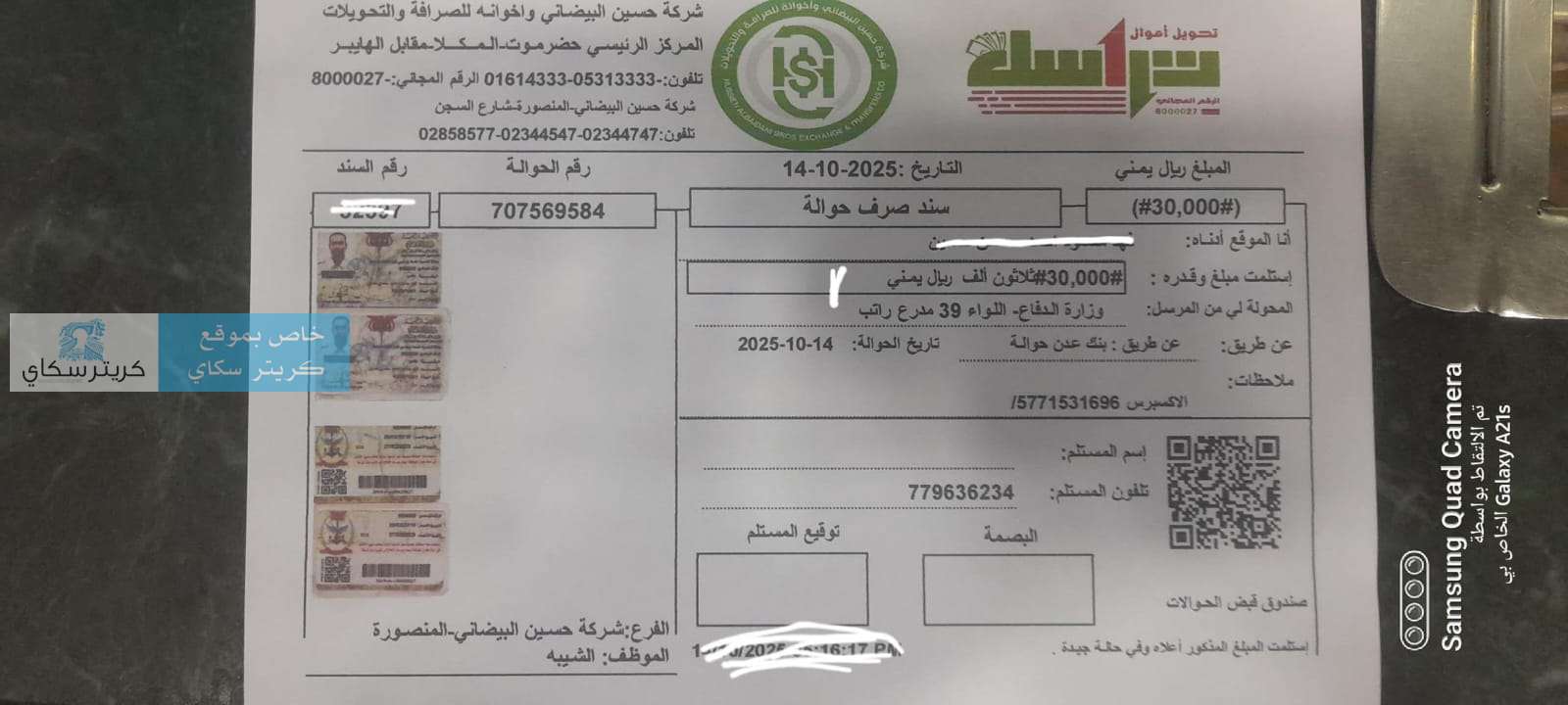 وذكر أحد الجنود المتضررين لكريتر سكاي أنه توجه امس لاستلام راتبه وتفاجأ باستمرار عملية الاستقطاع لنصف المبلغ، قائلاً: "كنا نتوقع أن نستلم الراتب كاملاً هذا الشهر، خاصة بعد مرور أربعة أشهر لم نستلم فيها أي مستحقات. لكننا تفاجأنا بأن نصف الراتب ما زال يُستقطع، وكأن الأمر أصبح سياسة شهرية لسرقة نصف مستحقاتنا".