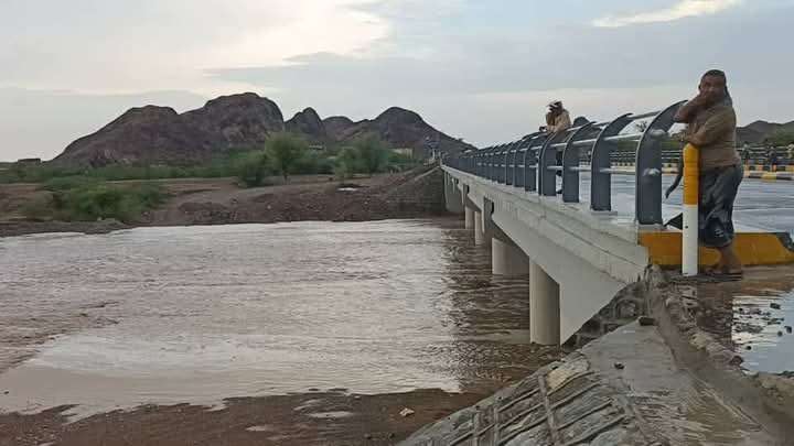 شاهد بالصورة.. سيول كبرى تضرب جسر موزع الكبير غرب تعز