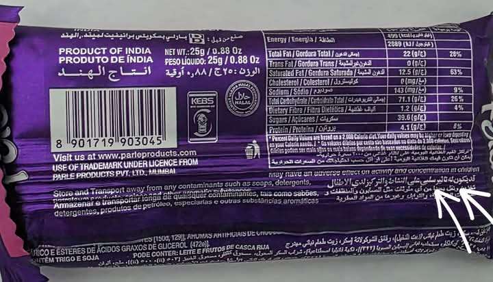 أثار منتج غذائي منشأه الهند، ويُباع على شكل كيك أو شوكولاتة، قلق الكثير من الأسر بعد أن لوحظ وجود تحذير واضح على غلافه يقول:
