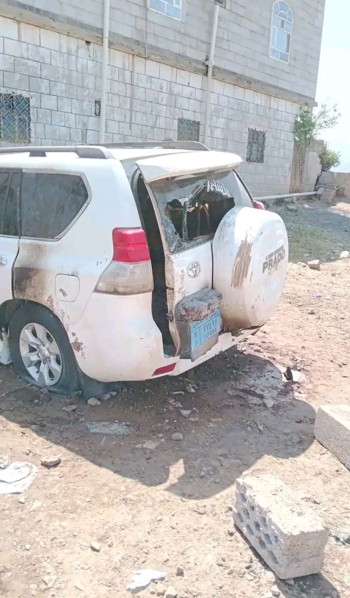 اقدم مجهولون على إضرام النار في سيارة الشيخ "نواف سليم" أمام منزله في منطقة "الزراري" بمديرية المخادر شمال محافظة إب.