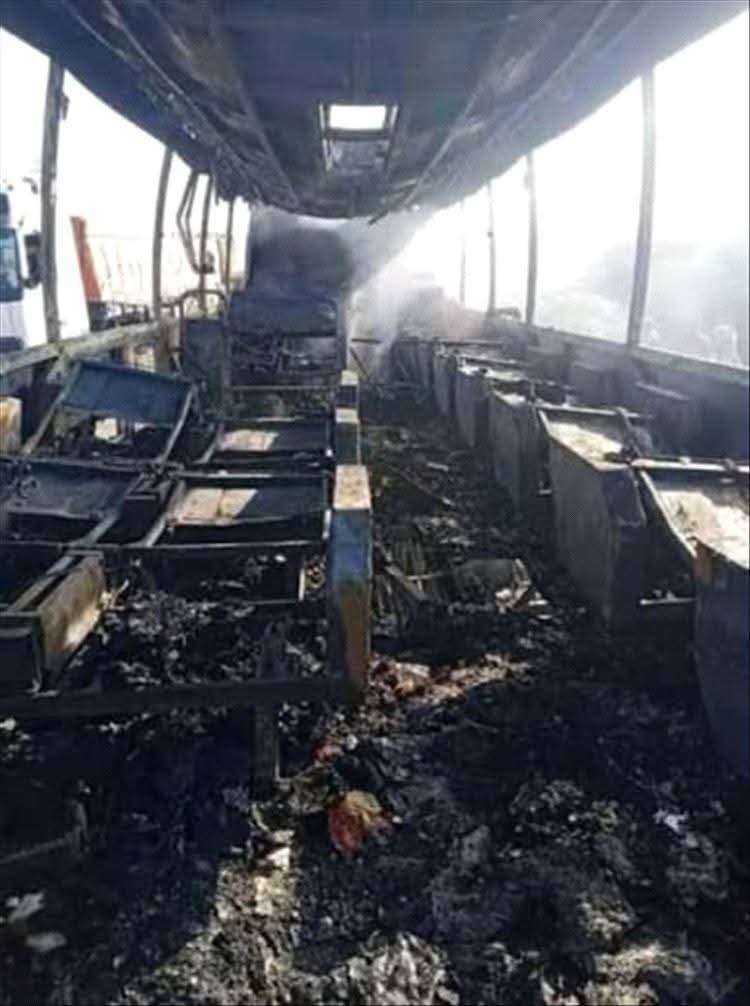 أُغلق الباب الرئيسي لباص النقل بسبب النيران، ما جعل العشرات عالقين في الداخل دون أن يتمكنوا من الفرار، في واحدة من أكثر الحوادث مأساوية وقسوة.