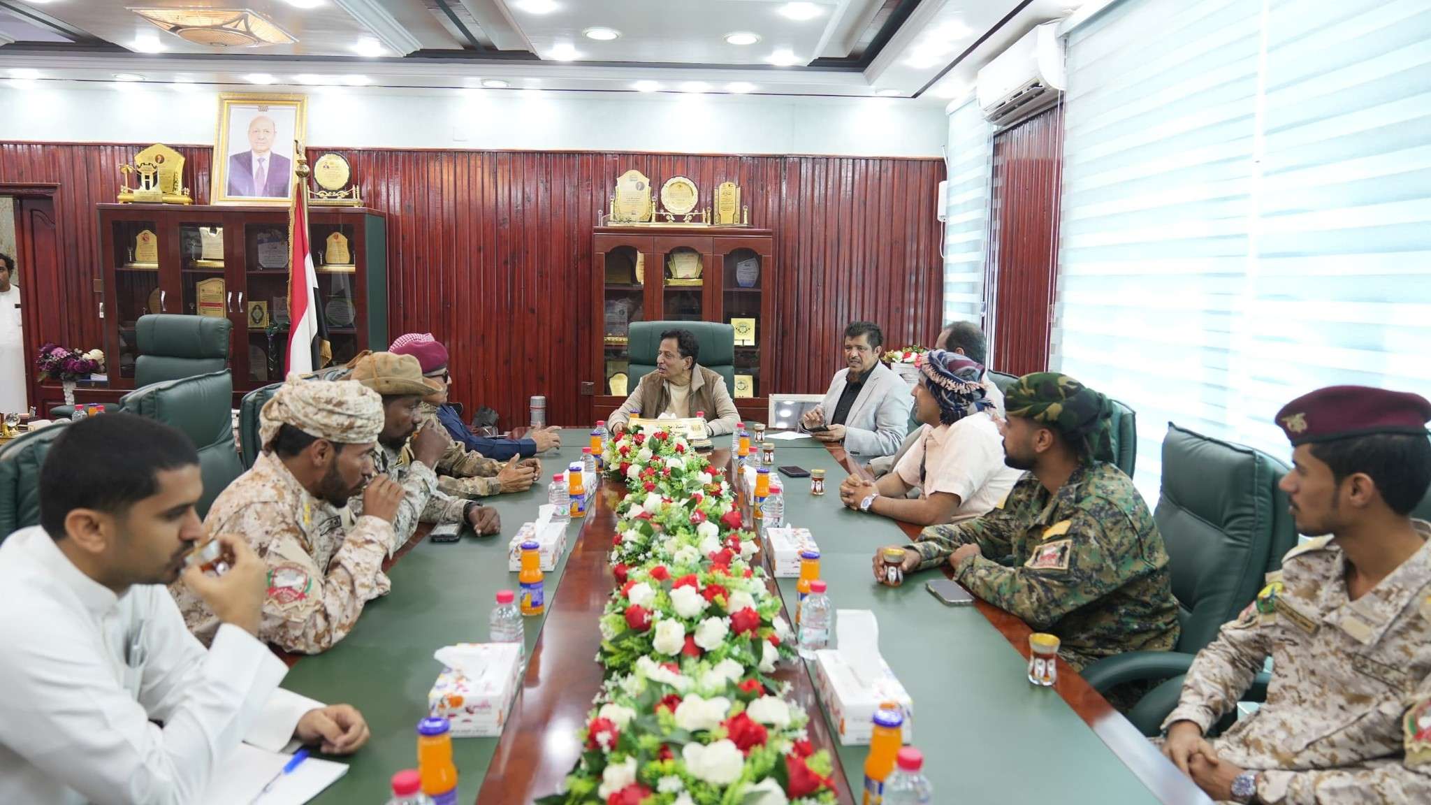 ورحب المحافظ بن ياسر بقائد قوات درع الوطن والضباط المرافقين له، مؤكداً أن قوات درع الوطن قوة رسمية أُنشئت بموجب قرار رئاسي، وتمثل رافداً مهماً للسلطة المحلية وللأجهزة الأمنية والعسكرية، وأن أفرادها جميعهم من أبناء المحافظة.