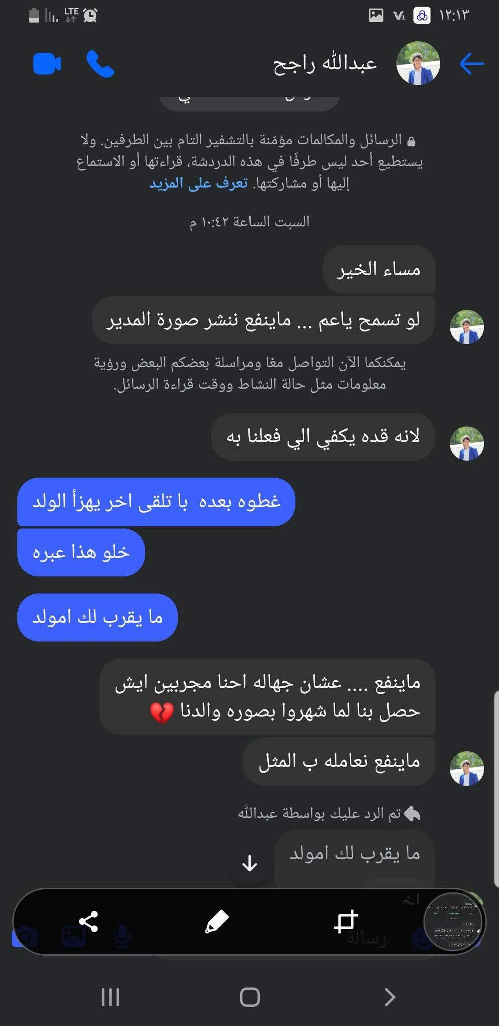 وبحسب مصادر فان أحد مشائخ محافظة عمران نشر صورة المدير كرد فعل منه على الواقعة فدخل أخو الطالب عبيدة مجاهد راجح واسمه عبدالله يراسل الشيخ الغولي يطالبه بحذف الصورة كي لا يعاني أبناء المدير مثل معاناتهم عند نشر صور والدهم في الإعلام ووسائل التواصل الإجتماعي!