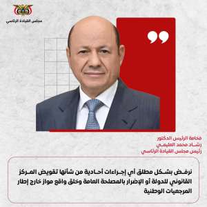 الرئيس العليمي: التحركات العسكرية الأحادية في المحافظات الشرقية تمثل تحديا مباشرا لجهود التهدئة، وتهديدا للاصلاحات الاقتصادية