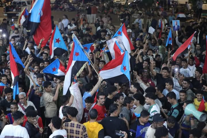 ورفع المتظاهرون أعلام الجنوب ومؤكدين استمرارهم بالاعتصام