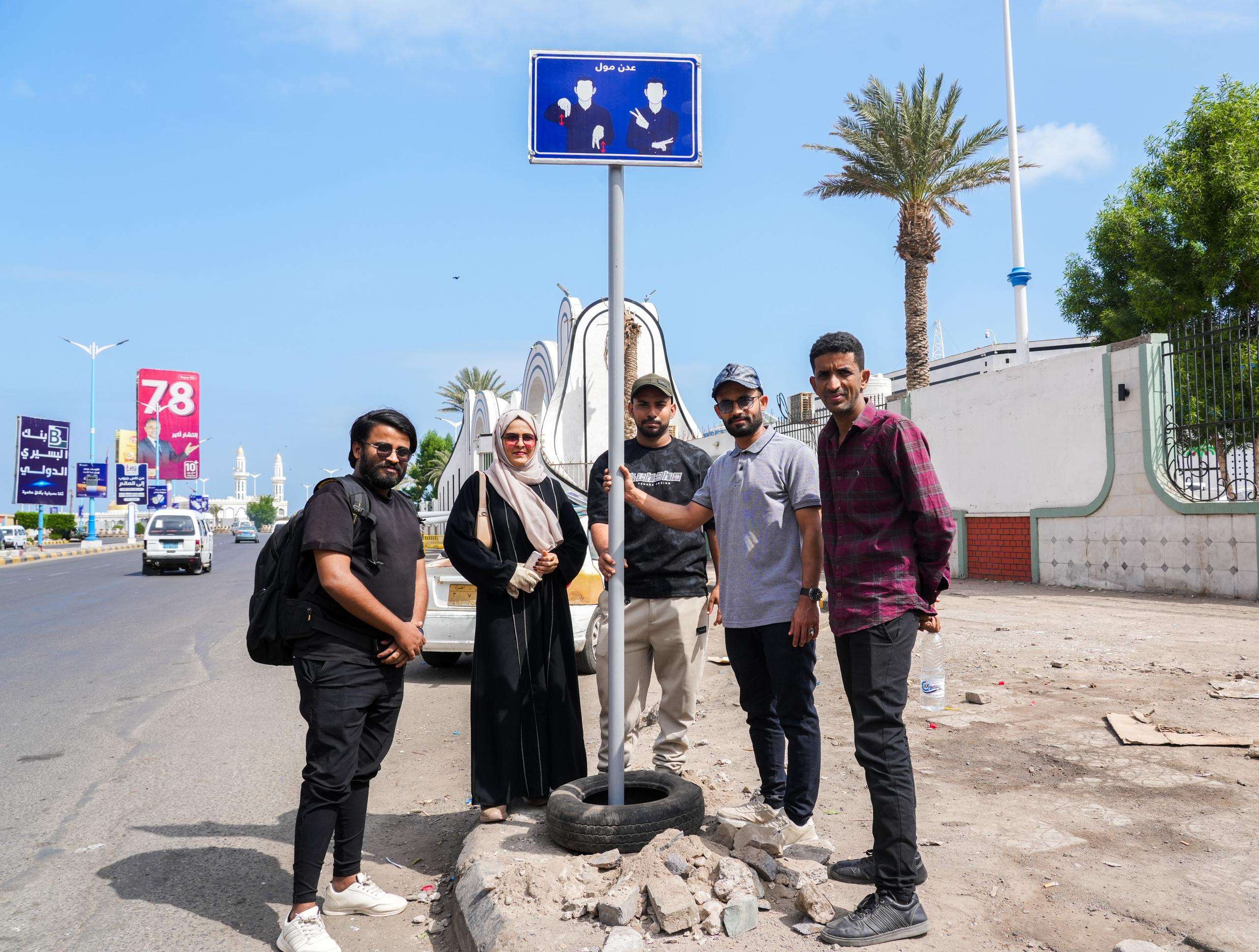 وجرى تركيب في مدخل مديرية صيرة بمنطقة العقبة، وبجوار عدن مول، على ان يتم استكمال عدد من اللوحات باماكن متفرقة.