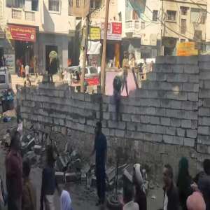 وجه محافظ تعز شمسان باعادة بناء سور عشوائي بوسط الشارع بمثلث المسبح .بحسب مصادر فان مدير مديرية القا...