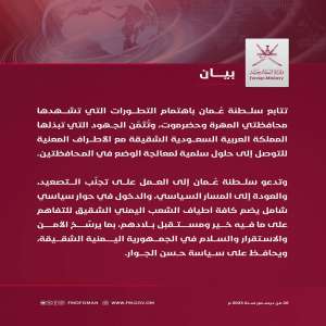 عاجل:عمان تعلن موقفها من التصعيد في حضرموت والمهرة