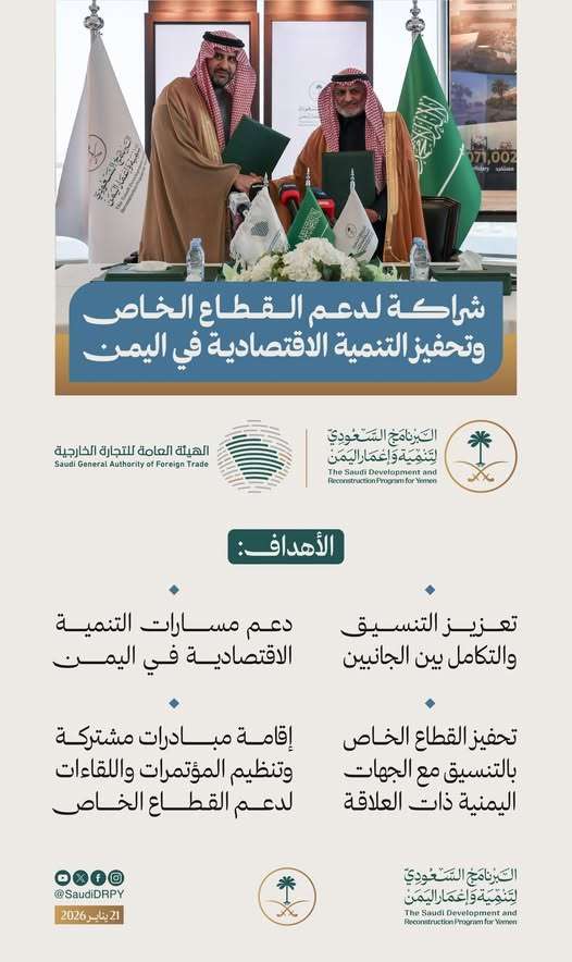 وقّع البرنامج السعودي لتنمية وإعمار اليمن، اليوم، مذكرة تعاون مع الهيئة العامة للتجارة الخارجية، بهد...