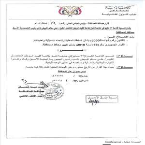 أصدر محافظ محافظة تعز، رئيس المجلس المحلي، الأستاذ نبيل عبده شمسان، اليوم القرار رقم (19) لسنة 2026م...