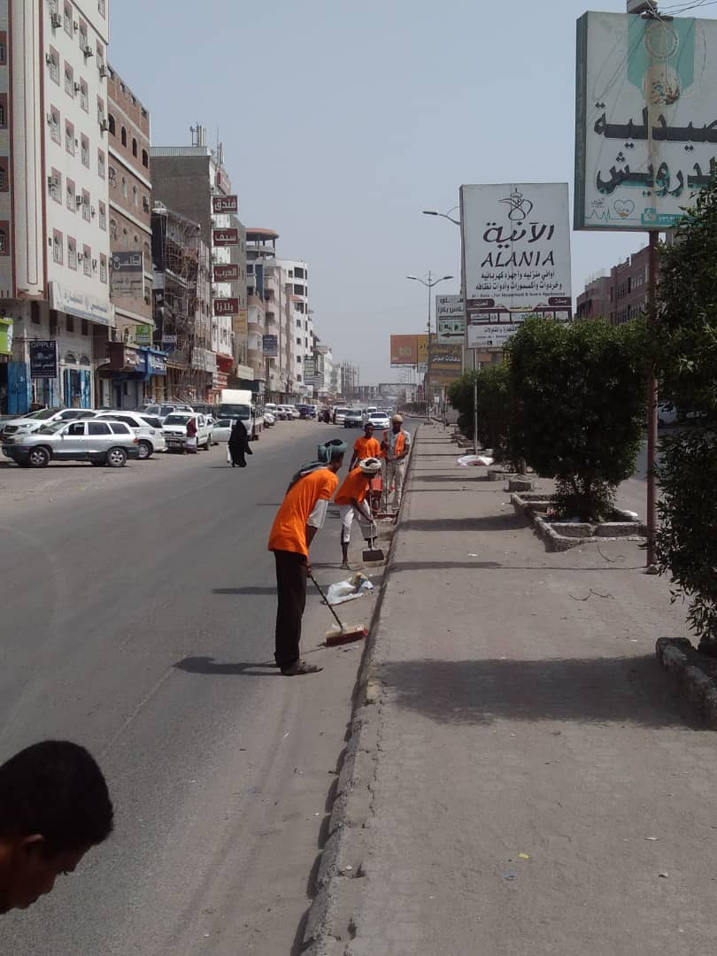 ففي مديرية صيرة تواصلت اليوم حملة النظافة في الشوارع الرئيسية والاسواق والاحياء القديمة والشعبية بمشاركة فريق من العمال وسيارات نقل القمامة يأتي في اطار الجهود المكثفة التي يبذلها قيادة وكوادر وعمال صندوق النظافة للحفاظ على نظافة شوارع واحياء ومناطق عموم المديريات ومواكبة لما شهدته العاصمة عدن خلال اجازات ايام عيد الاضحى المبارك .من زيادة في تكدس اكوام القمامة .رغم الظروف الصعبة ونقص الامكانيات والمعدات التي يعانيها الصندوق .