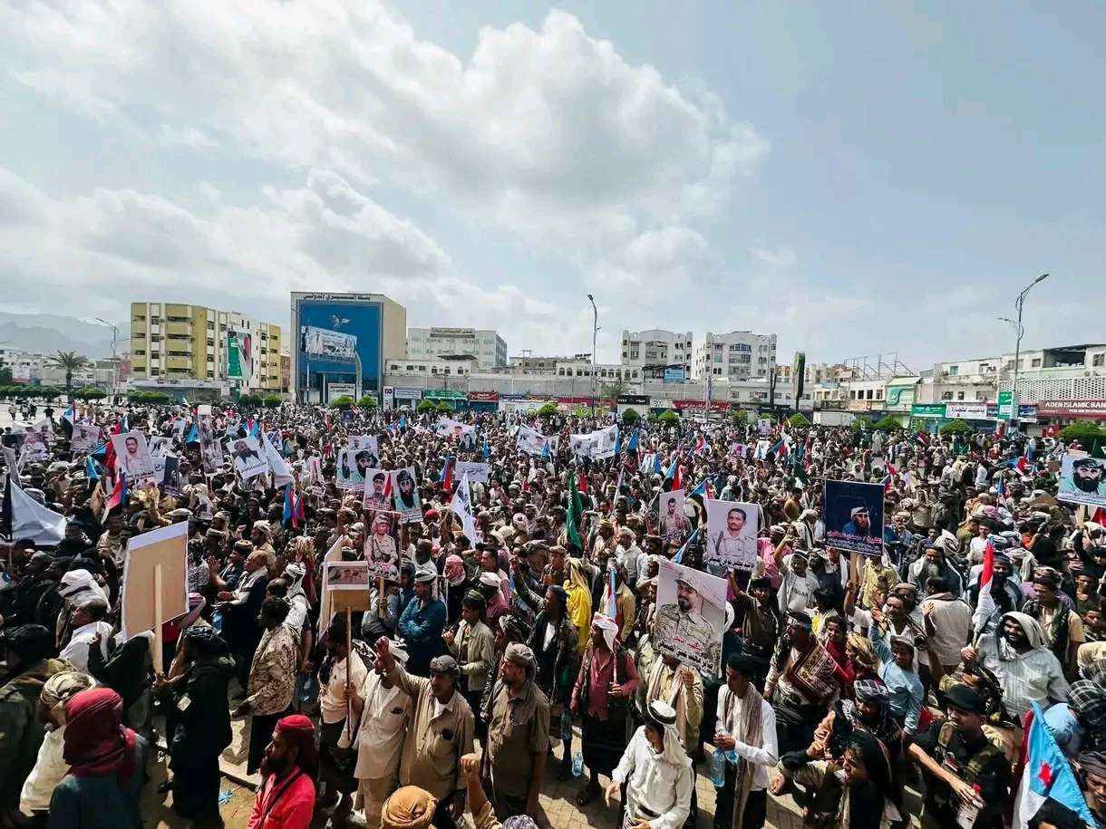 عدن: تظاهرة حاشدة بساحة العروض تنديداً باستهداف العميد حمدي شكري وترفع اعلام السعودية