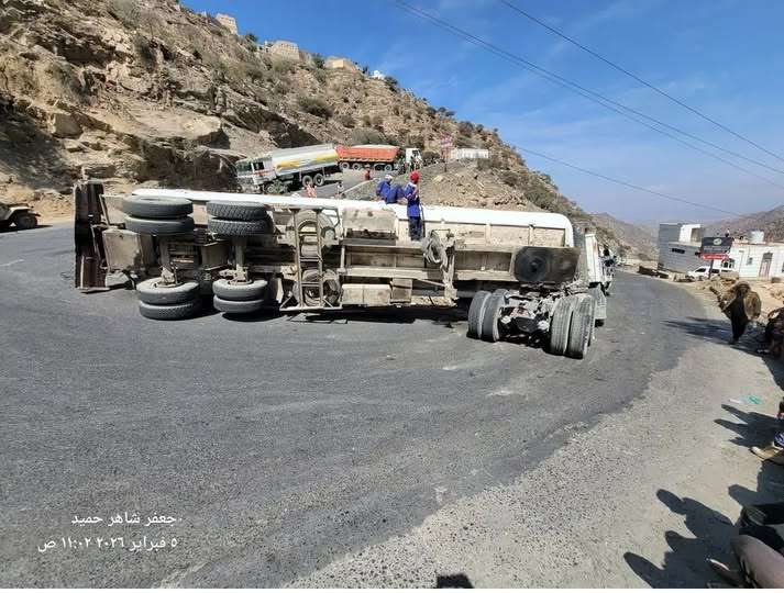 وأفادت مصادر محلية بأنه لم ترد حتى الآن معلومات مؤكدة عن وقوع إصابات بشرية، فيما باشرت الجهات المعنية والمتطوعون التعامل مع الحادث وإزالة آثار الانقلاب لإعادة فتح الطريق أمام المركبات.