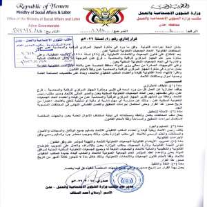 أصدر مدير عام مكتب وزارة الشؤون الاجتماعية والعمل بالعاصمة المؤقتة عدن، الأستاذ أرسلان أحمد السقاف،...