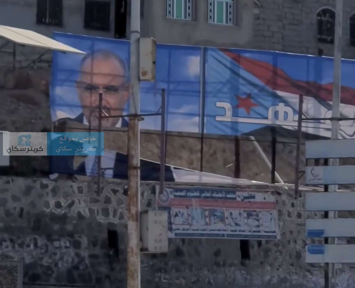 تداول ناشطون وصحفيون في العاصمة المؤقتة عدن صوراً تُظهر تعرض اللوحة الإعلانية الضخمة لعيدروس الزبيدي، الواقعة في طريق "العقبة" الاستراتيجي، لعملية تأكل وتمزق ملحوظة.