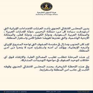 أصدرت هيئة الشؤون الخارجية للمجلس الانتقالي الجنوبي بياناً سياسياً هاماً، أدانت فيه بأشد العبارات ا...