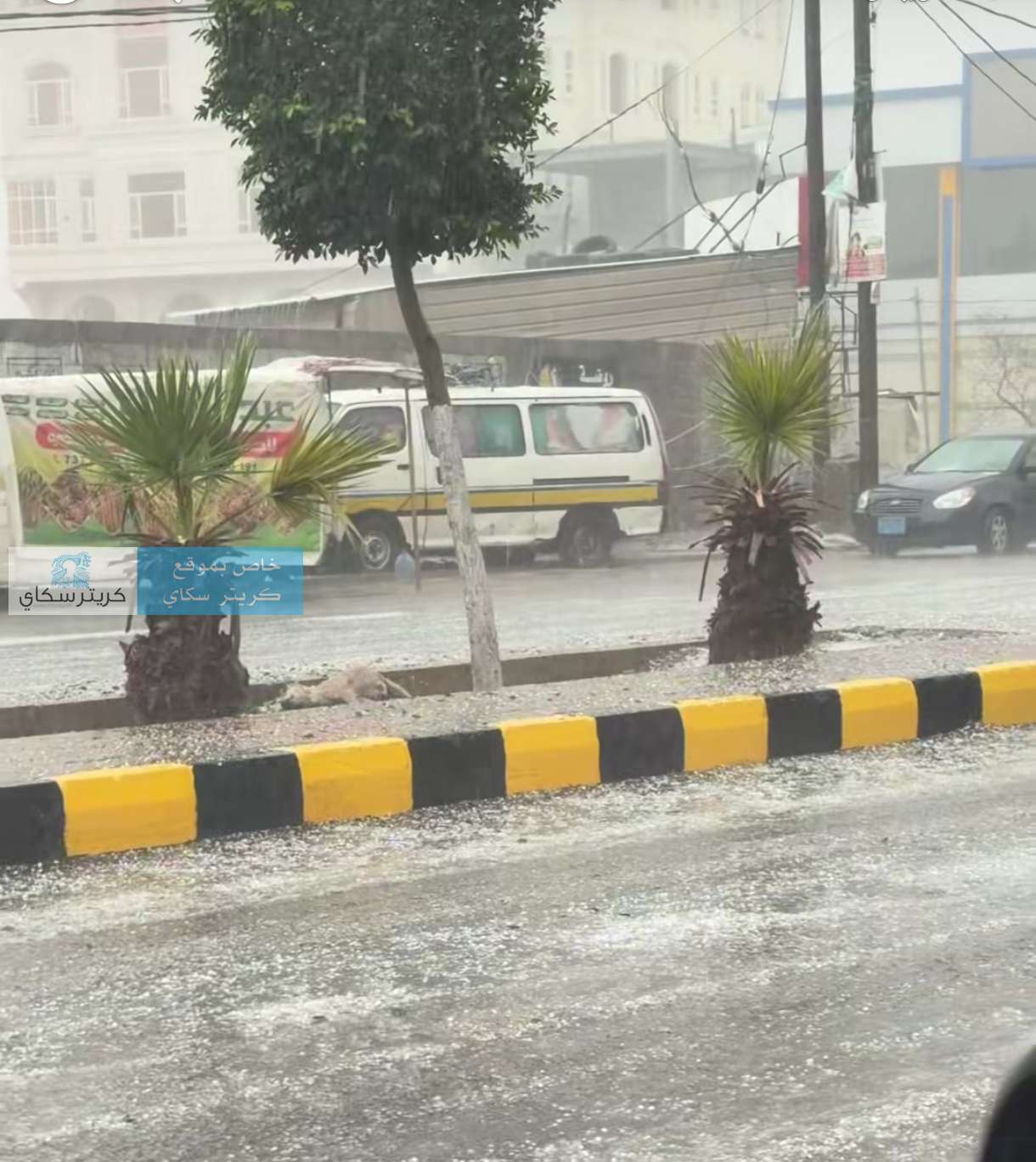 شهدت العاصمة صنعاء، ظهر اليوم، هطول أمطار غزيرة رافقها تساقط كثيف لحبات البرد، في مشهد لافت تسبب بتغطية بعض الشوارع بطبقة من البرد.