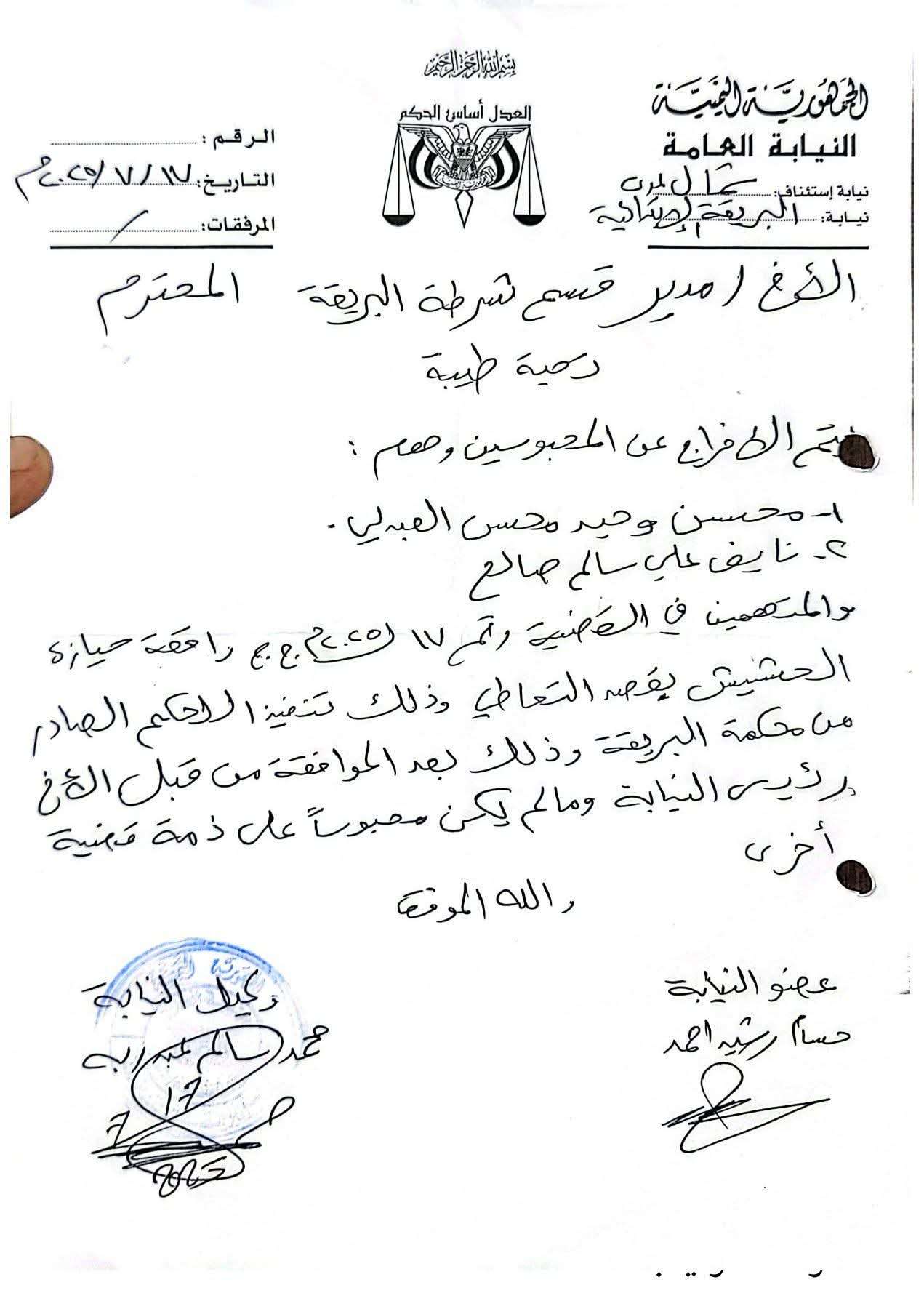 واوضح مدير قسم شرطة البريقة العقيد نجيب سالم أن الشخص المعني معروف بسوابقه في قضايا تعاطي الحشيش وقد سبق توقيفه على ذمة تلك القضايا حيث حضر إلى بوابة قسم شرطة البريقة في حالة تخدير واضحة وأقدم على محاولة اقتحام المقر بالقوة متجاهلاً التعليمات الصريحة بعدم السماح بالزيارة في ذلك التوقيت.