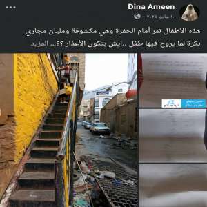 أطلقت والدة الطفل أيلول السامعي في وقت سابق نداء استغاثة عاجلاً من وجود حفرة صرف صحي مكشوفة وم...