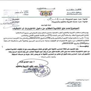 وجّه مكتب التربية والتعليم بتعز المدارس الأهلية بعدم حرمان الطلاب من دخول الاختبارات بسبب عدم سداد ا...