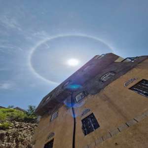 شهدت سماء منطقة القود لعصار في يافع، ظهر اليوم، ظاهرة جوية لافتة تمثلت في ظهور هالة دائرية تحيط بالش...