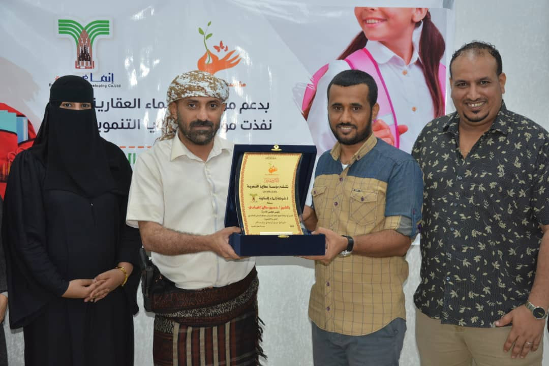 كرم فريق مؤسسة عطايا التنموية ممثلا بالرئيس الفخري للمؤسسة احمد المحضار، شركة انماء العقارية ممثلة بالقائم بأعمال رئيس مجلس الإدارة مبارك حسين الهمامي صباح اليوم في مقر الشركة بالعاصمة عدن.