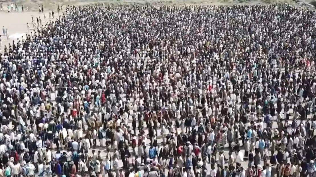 أظهر فيديو حشود هائلة من المجندين العائدين من الحد الجنوبي إلى مدينة تعز استجابة لدعوة رئيس المجلس التنسيقي الأعلى للمقاومة الشيخ حمود سعيد المخلافي .