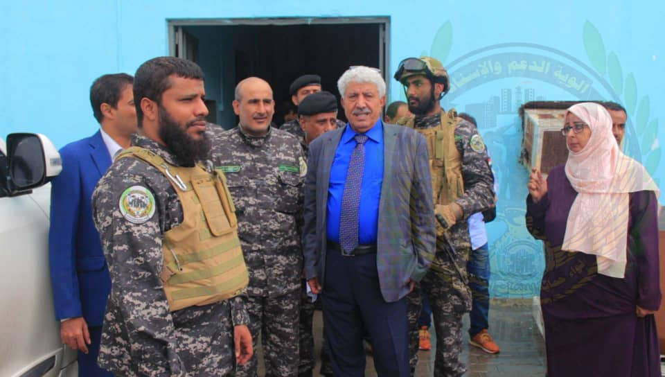 وعقب التسليم والانتشار طاف وزير الصحة العامة والسكان الدكتور ناصر باعوم وقائد لواء حماية المنشآت الحكومية العميد أحمد مهدي بن عفيف على أقسام المستشفى.
