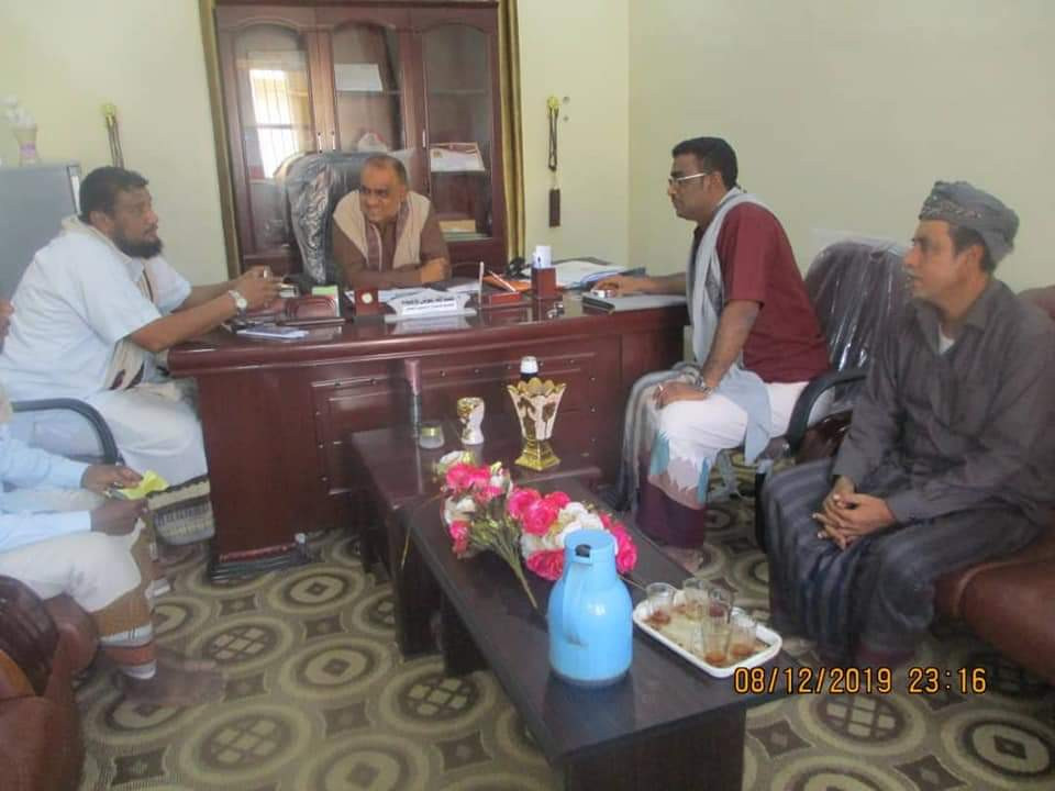 التقى الاخ ناصر خير كلشات رئيس اللجنة الفنية الاستشارية مع عدد من اعضاء اللجنة بالسلطة المحلية في مديرية سيحوت ممثلة في الشيخ محمد علي سعيد الزويدي المدير العام والاستاذ عبدالله عوض باعبده القائم باعمال الامين العام لمحلي سيحوت وبحضور الشيخ سعيد سالم ميطان السماحي عضو المجلس المحلي بالمهره .
