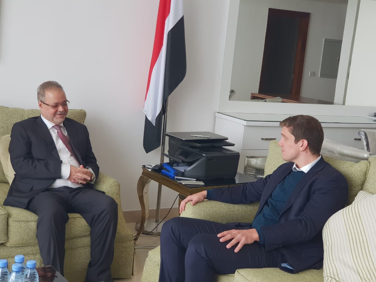 وقال المخلافي في تغريدة له على تويتر:" التقيت امس جوناثين ورجان ممثل مكتب اليمن في وزارة الخارجية البريطانية بلندن.