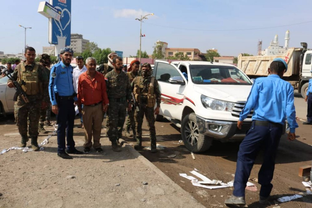 دشن العقيد /جمال احمد عبد الله ديان مدير عام شرطة السير عدن والنقيب /كرم المشرقي قائد القطاع الثامن حزام امني الشيخ عثمان والاخ / فهيم عوض عباد رئيس لجنة الخدمات الشيخ عثمان حملة احتجاز المركبات غير المرقمة في مديرية الشيخ عثمان والتي نفذت صباح اليوم في جولة الغزل والنسيج والتي ستستمر لتشمل مديريات محافظة عدن والتي تهدف الى فرض النظام والقانون والزام سائقي المركبات والسيارات بعمل الإجراءات اللازمة لترقيم المركبات المختلفة .